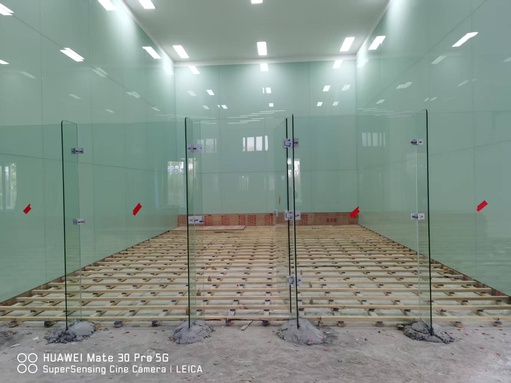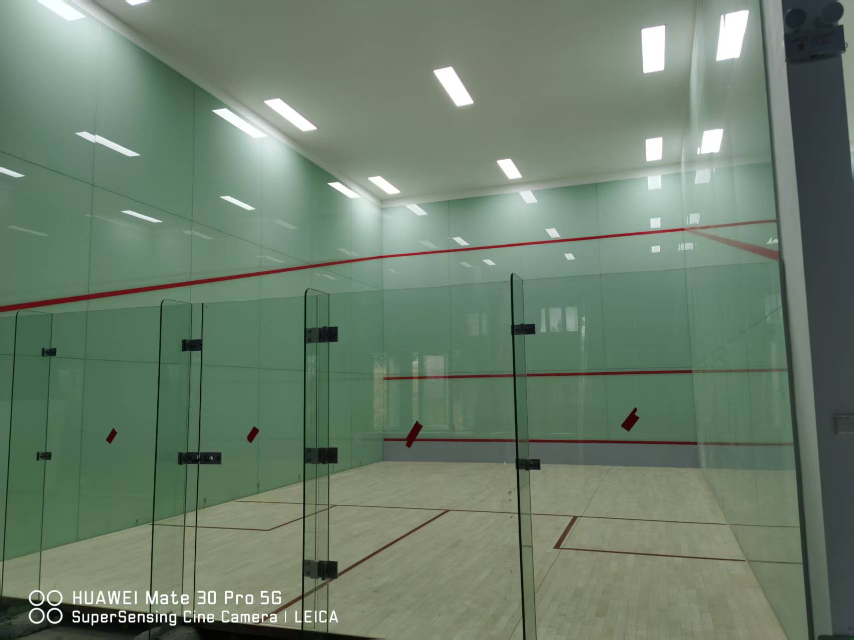 • "全玻璃壁球馆采用90%透光防爆玻璃与专业防滑地面,兼顾安全性与视觉体验,可承受150公里/小时球速冲击,适合专业赛事与高端健身空间,兼具环保与快速拆装优势。"