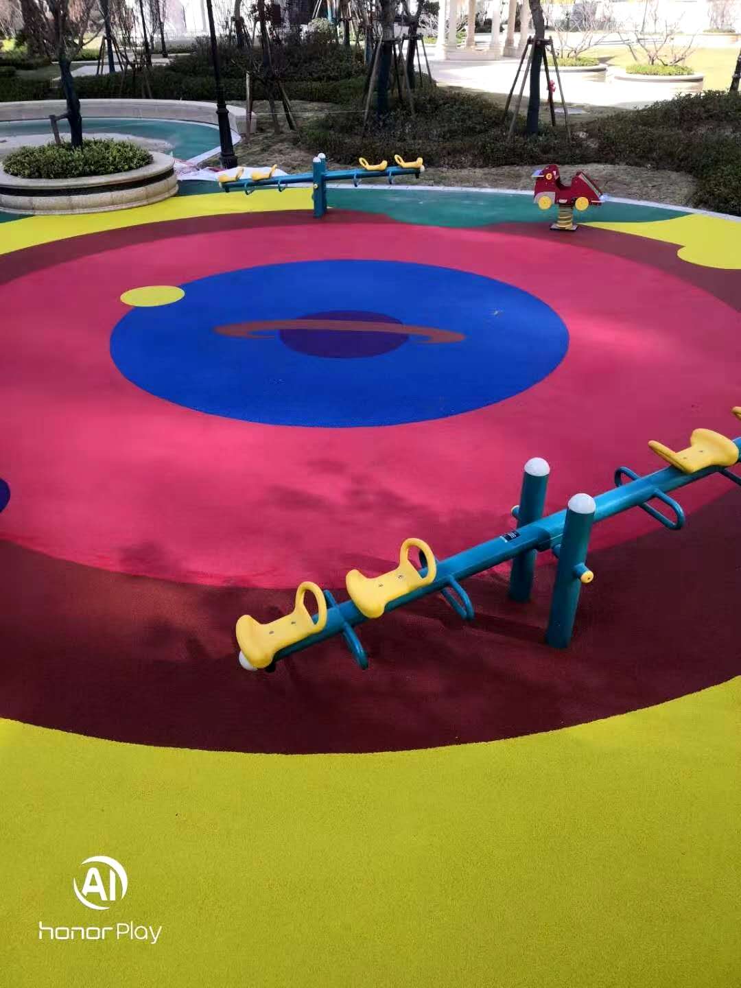 ??13、色彩:表面颜色应柔和,场地颗粒状表层材料,应能防止刺眼的反射,美观耐久。