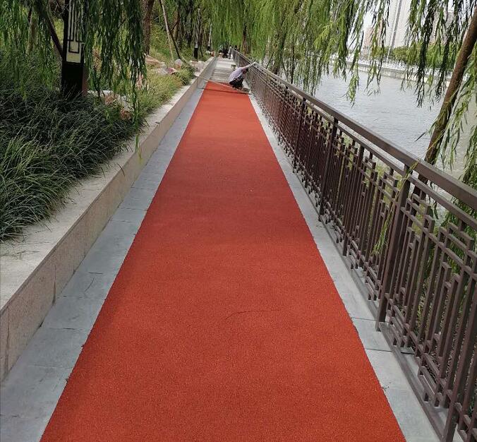 长度1公里,施工周期为8天,欢迎新老客户前来现场参观考察。本项目塑胶步道厚度15mm,弹性较好,给跑步者较好的脚感,